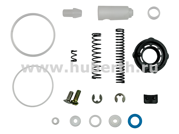 Набор уплотнений для пневматических краскопультов Huberth модели RP14000H. В набор входят уплотнительные и стопорные кольца, пружины, сальники, воздухораспределительное кольцо, поршень, клапан, винты.